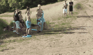 美女骑车摔进河里