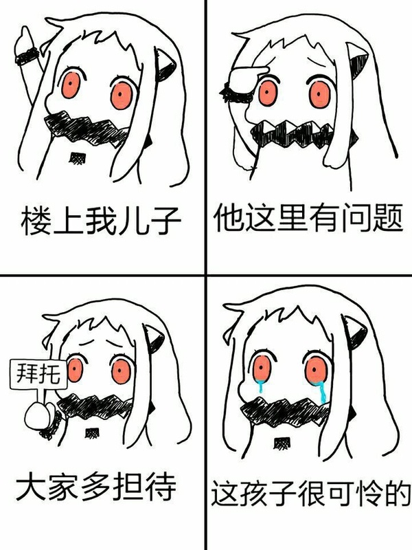 A:楼上我儿子B:他这里有问题C:大家多担待D:这孩子很可怜