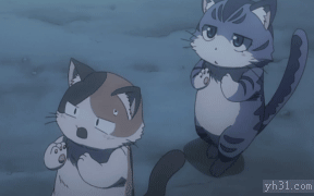 两只跳舞的卡通小猫