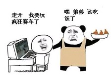 走开,我要玩疯狂的赛车了,嘿,弟弟,该吃饭了