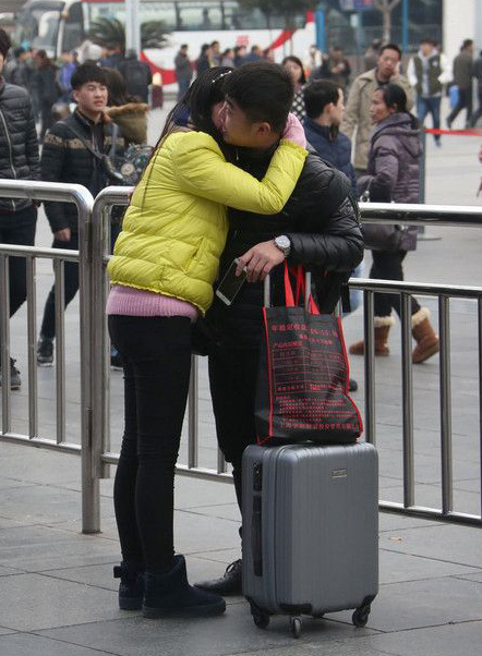 情侣在离别的车站,有一万个的不舍
