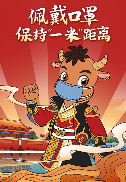 牛宝宝提醒你,佩戴口罩,保持一米距离