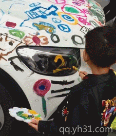 熊孩子拿笔给老爸的车涂鸦