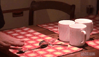 将三根勺子一起弹入杯中