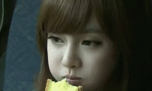 大口吃面包的美女