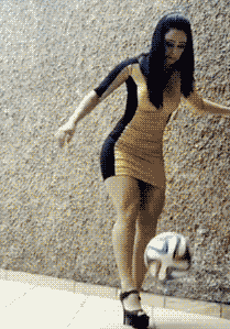 穿着高跟鞋玩足球的女人