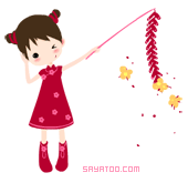 卡通女生放鞭炮欢迎