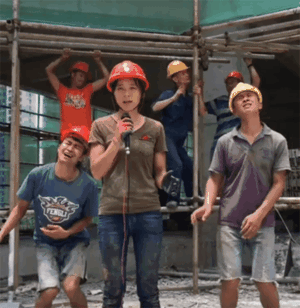 工地上的小型演唱会,看得出来大家都很卖力