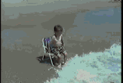 被海浪打翻的小孩