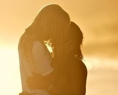夕阳下热烈的亲吻