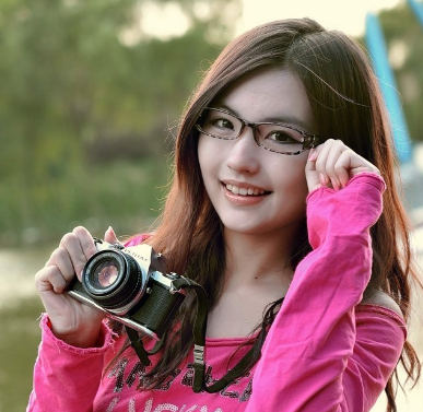 戴眼镜拿相机的淑女