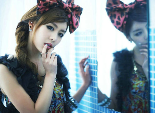站在镜子前的化妆女人