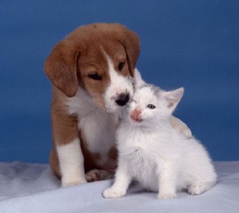 大狗安抚小白猫