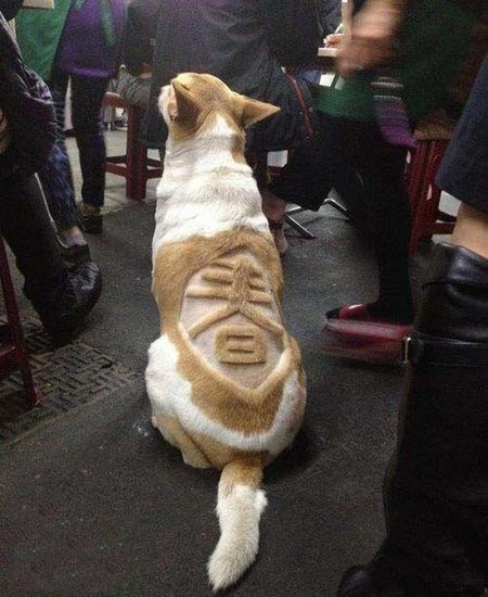 在狗背上剪出一个“春”字