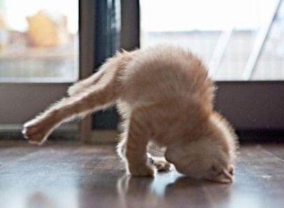 猫咪也会玩倒立