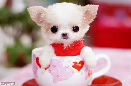 坐在杯子里的超萌小狗