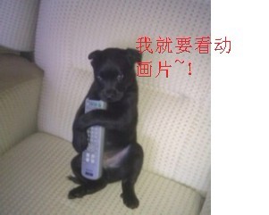 抢遥控器要看动画片的小狗