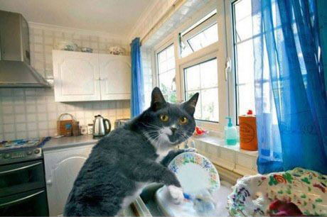 养这样会做家务的猫咪,真幸福啊