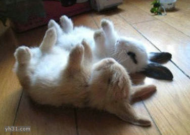 两只四脚朝天的兔子