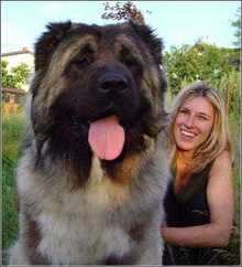 超大型狗狗与美女相伴