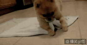 萌小狗用毯子把自己卷起来