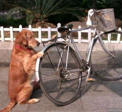 忠诚的狗狗,帮主人看管好自行车