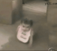 猫咪从小孩头上跑过去