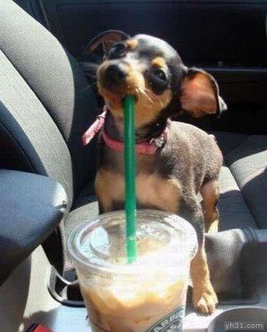 狗狗偷喝主人的奶茶