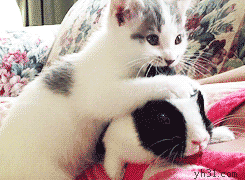 霸道的猫咪咬兔耳朵玩