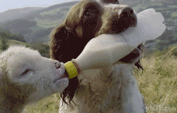狗狗给羊驼喂奶