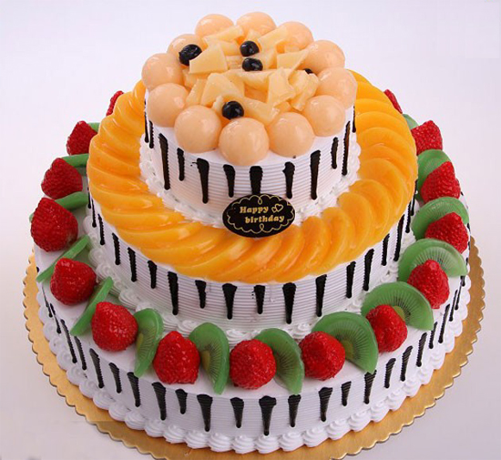 漂亮的三层水果蛋糕