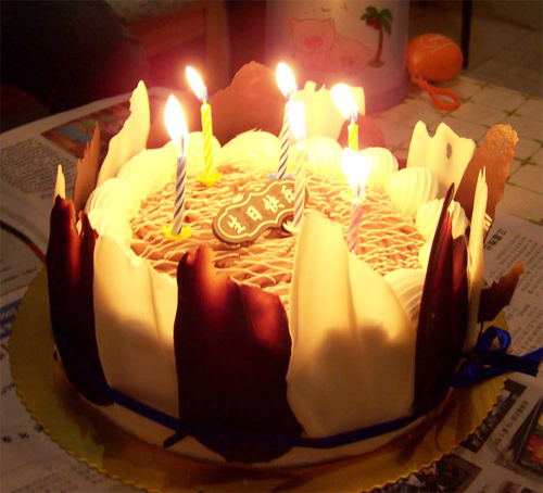 点燃蜡烛的生日蛋糕,快来许愿吹灭吧