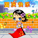 卡通女人版挥舞国旗