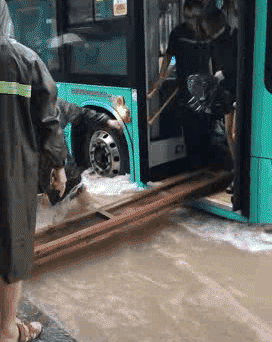 大家不要怕,车门口搭木桥下车