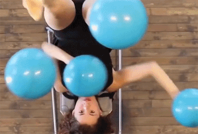 倒着麻溜玩球的美女