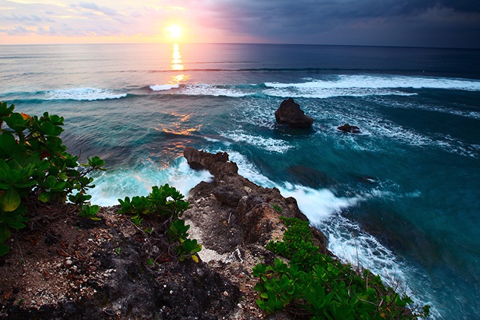 太阳慢慢落入海底